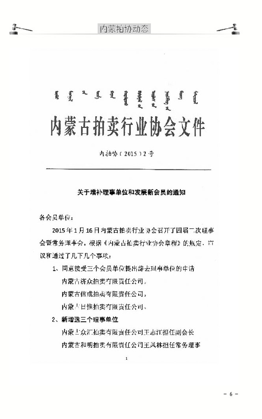 【內(nèi)蒙古拍賣2015年第1期(總第60期)】