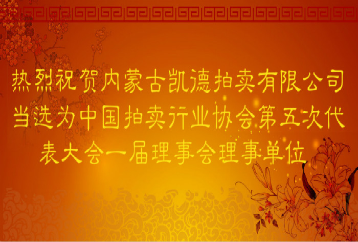 熱烈祝賀內(nèi)蒙古凱德拍賣有限公司當(dāng)選為中國拍賣行業(yè)協(xié)會第五次代表大會一屆理事會理事單位