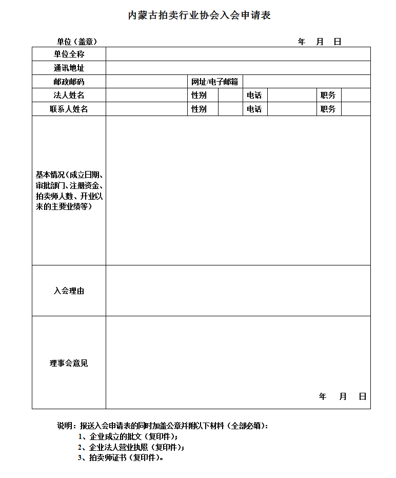 拍賣企業(yè)入會(huì)申請(qǐng)表