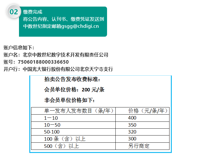 為了幫助企業(yè)更好的進(jìn)行公告宣傳,也為了幫助企業(yè)節(jié)省成本費(fèi)用開(kāi)支。內(nèi)蒙古拍賣(mài)行業(yè)協(xié)會(huì)和北京拍賣(mài)行業(yè)協(xié)會(huì)一同與中國(guó)發(fā)展網(wǎng)達(dá)成協(xié)議,我協(xié)會(huì)會(huì)員企業(yè)每次公告費(fèi)用為200元。